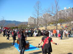 初めての“とんど”ということで,和太鼓クラブの方々が“祝い太鼓”を披